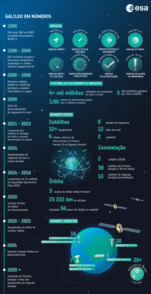 O Galileo é o sistema global de navegação por satélite da União Europeia (UE), que funciona em paralelo ao GPS (EUA), ao GLONASS (Rússia) e ao BeiDou (China). Programa emblemático da União Europeia, o Galileo assenta numa governação partilhada entre a Comissão Europeia (CE), a Agência Espacial Europeia (ESA) e a Agência da União Europeia para o Programa Espacial (EUSPA). A Comissão Europeia define as prioridades políticas, programáticas e orçamentais e traça a evolução estratégica dos programas; a ESA transforma essas orientações em satélites, sistemas de terra e campanhas de lançamento; e a EUSPA assegura que tudo se traduz em serviços operacionais, monitorizando o desempenho, trabalhando com o mercado e promovendo a adoção de aplicações baseadas em Galileo.